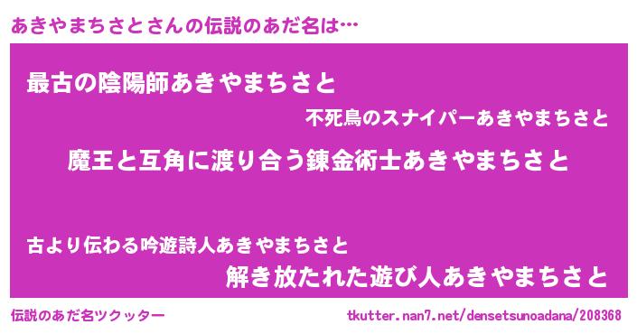 | 胡散臭い通販商品みたいなあだ名 | 『お金では代えられない隕石のかけら…その名も「あきやまちさと」』 |
