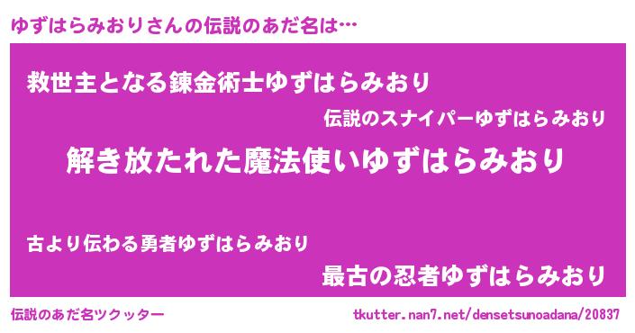 | 胡散臭い通販商品みたいなあだ名 | 『伝統あるサプリメント…その名も「ゆずはらみおり」』 |