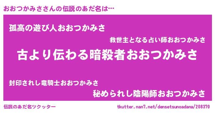| ヒーロー風カッコイイあだ名 | 『仮面オオダー』『ネオオオツカミサ』 |