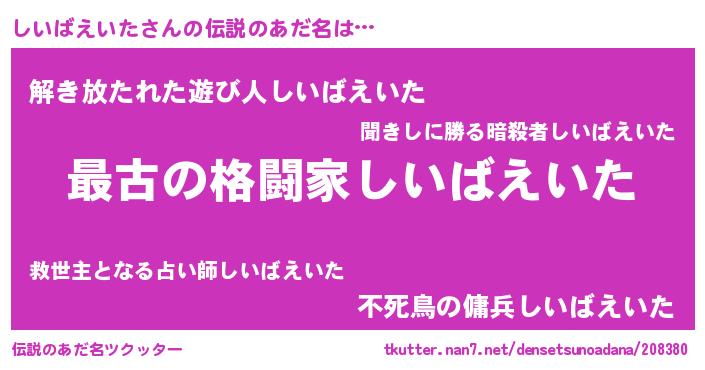 | ヒーロー風カッコイイあだ名 | 『仮面シイダー』『銀牙騎士シイ』 |