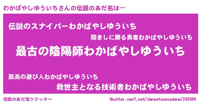 | 男性向けラノベタイトル風あだ名 | 『魔弾の王とわかばやしゆういち』 |