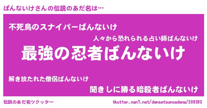 | ヒーロー風カッコイイあだ名 | 『究極戦士バンナイケ』『仮面バンダー』 |