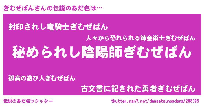 | 意味不明あだ名 | 『ぎむぜばんフォーエバー』 |