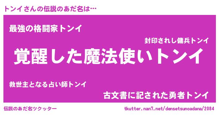 | ヒーロー風カッコイイあだ名 | 『炎刃騎士トン』『ウルトラトンイマン』 |