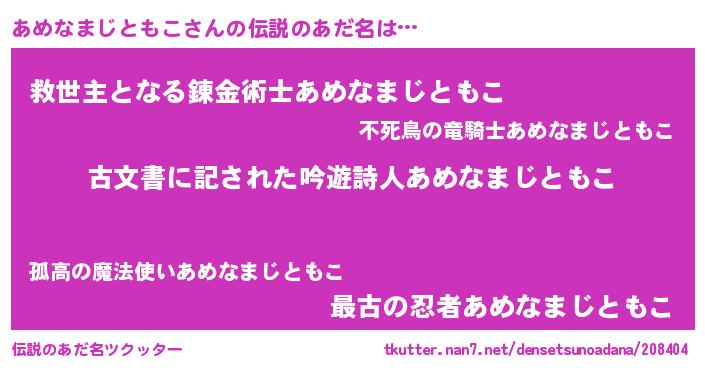| 肩書あだ名 | 『あめなまじともこ先生』 |