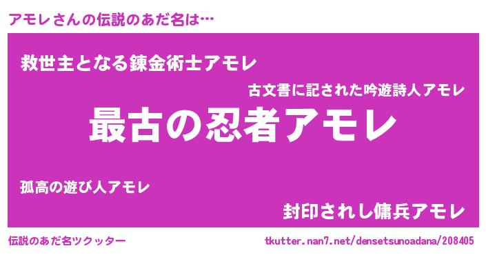 | ヒーロー風カッコイイあだ名 | 『仮面アモダー』『最強戦士アモレ』 |