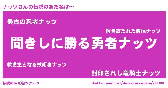 | ファンタジー風あだ名 | 『ナッディッシュ』『エターナルナッツー』 |