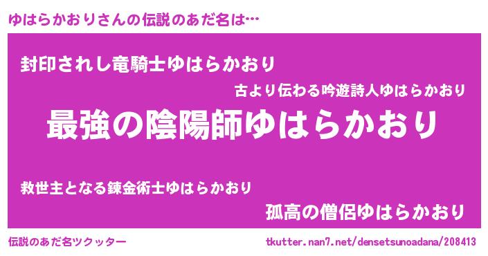 | 男性向けラノベタイトル風あだ名 | 『Re:ゆはらかおりから始める異世界生活』 |