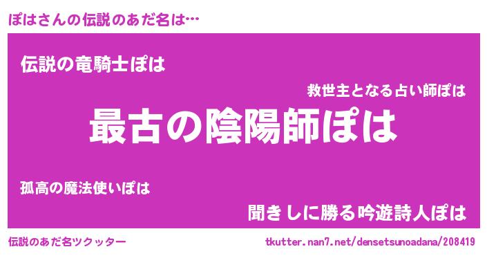 | 2回繰り返すあだ名 | 『ぽぽはは』『ぽはぽは』『わきわき』 |