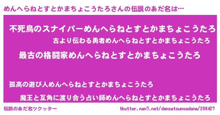 | ヒーロー風カッコイイあだ名 | 『ウルトラめんへらねとすとかまちょこうたろマン』 |