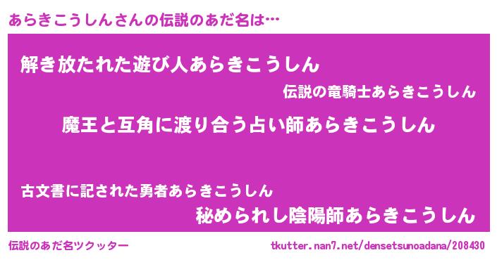 | ヒーロー風カッコイイあだ名 | 『愛の使者あらきこうしん』 |