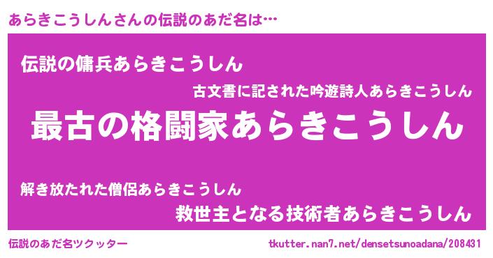| 意味不明あだ名 | 『あらきこうしんフォーエバー』 |