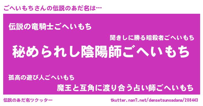 | 意味不明あだ名 | 『ごへいもちフォーエバー』 |