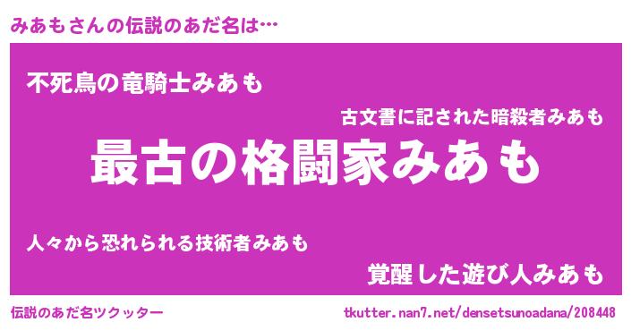 | ヘコむあだ名 | 『なまこ酢』『みあにー』『みあ太郎』 |
