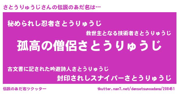 | 男性向けラノベタイトル風あだ名 | 『ダンジョンにさとうりゅうじを求めるのは間違っているだろうか』 |