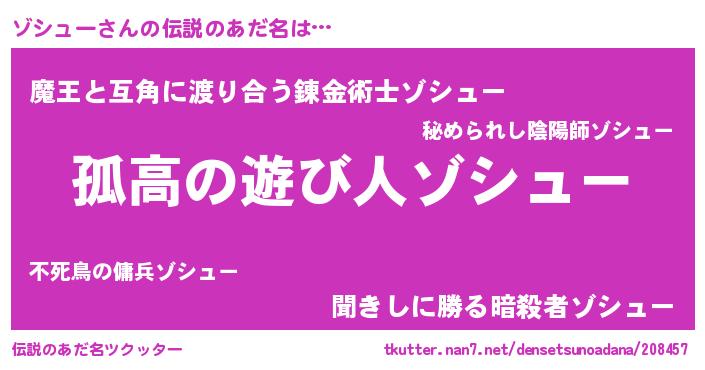 | 女子向けラノベタイトル風あだ名 | 『ゾシューは平凡を望む』 |