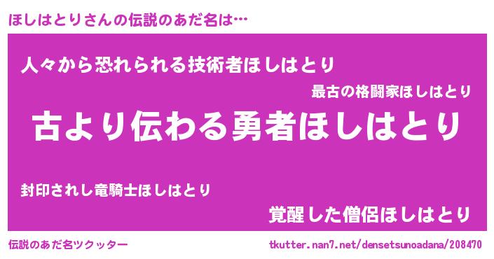 | ヒーロー風カッコイイあだ名 | 『ウルトラ戦士ホシハトリ』 |