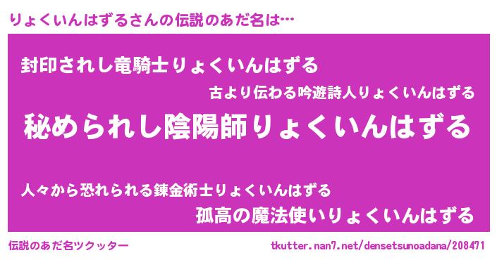 | ファンタジー風あだ名 | 『エターナルリョクインハズルー』 |