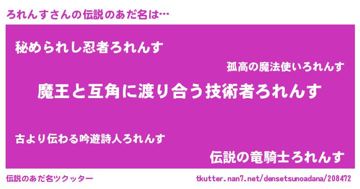| ヒーロー風カッコイイあだ名 | 『仮面ロレダー』『友情の使者ろれんす』 |