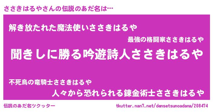 | ヘコむあだ名 | 『ささきはるや(小並感)』『ささっぺ』 |
