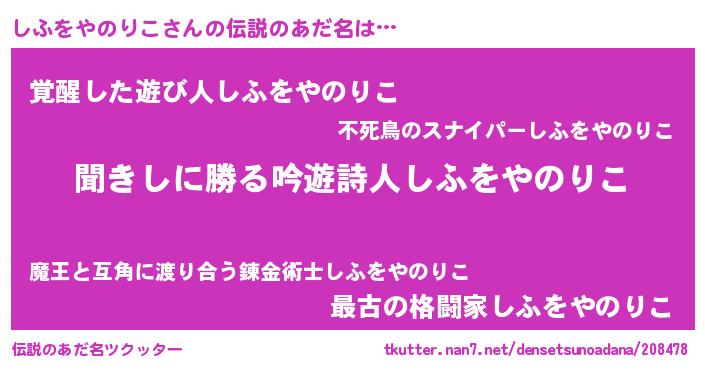 | 意味不明あだ名 | 『自称しふをやのりこ』 |