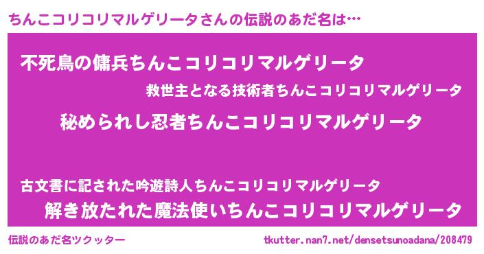 | ファンタジー風あだ名 | 『エターナルチンココリコリマルゲリーター』 |