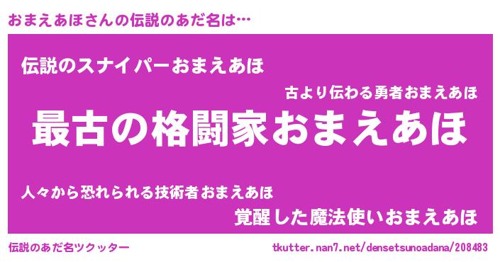 | 意味不明あだ名 | 『おまえあほフォーエバー』 |