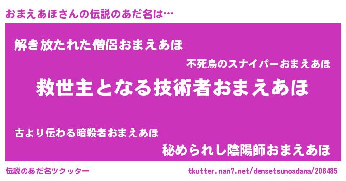| ヘコむあだ名 | 『おまお』『豆乳』『おまにゅー』 |