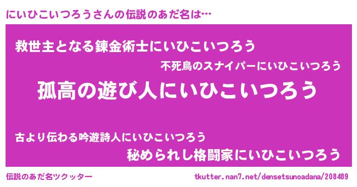 | 胡散臭い通販商品みたいなあだ名 | 『信頼と実績のペンダント…その名も「にいひこいつろう」』 |