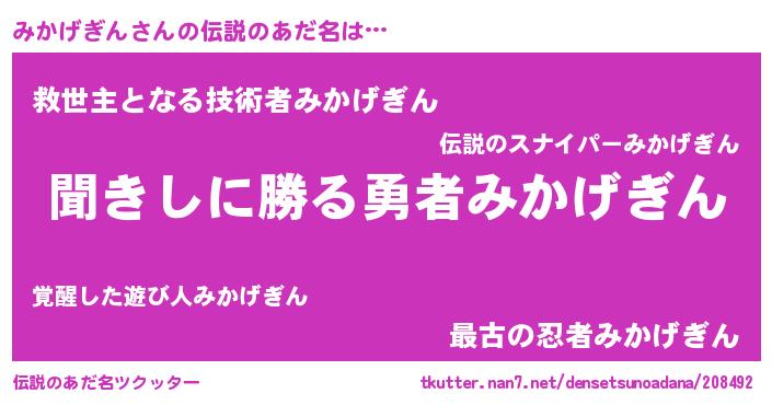| 男性向けラノベタイトル風あだ名 | 『ミカゲギンスレイヤー』 |