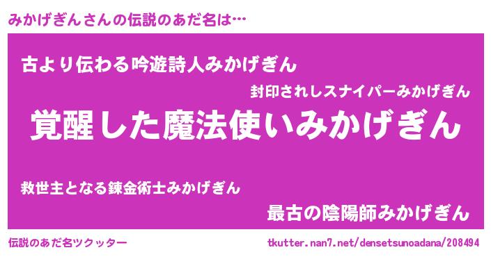 | 意味不明あだ名 | 『住所不定無職みかげぎん(12歳)』 |