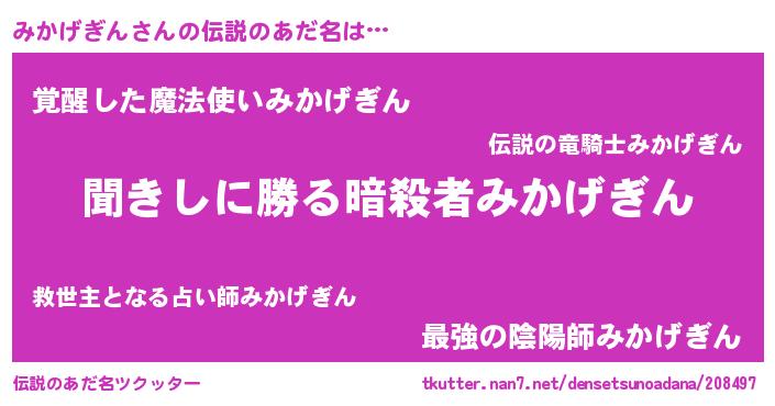 | ヒーロー風カッコイイあだ名 | 『ネオミカゲギン』『幻影騎士ミカ』 |