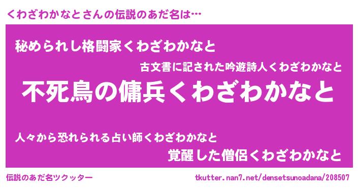 | 恥ずかしいあだ名 | 『プリティーくわざわかなと』『くわちん』 |