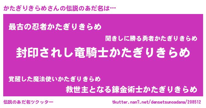 | 胡散臭い通販商品みたいなあだ名 | 『億万長者になれるブレスレット…その名も「かたぎりきらめ」』 |