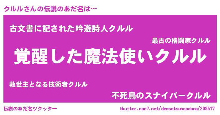 | ファンタジー風あだ名 | 『カーククルラー』『ファントムクルス』 |