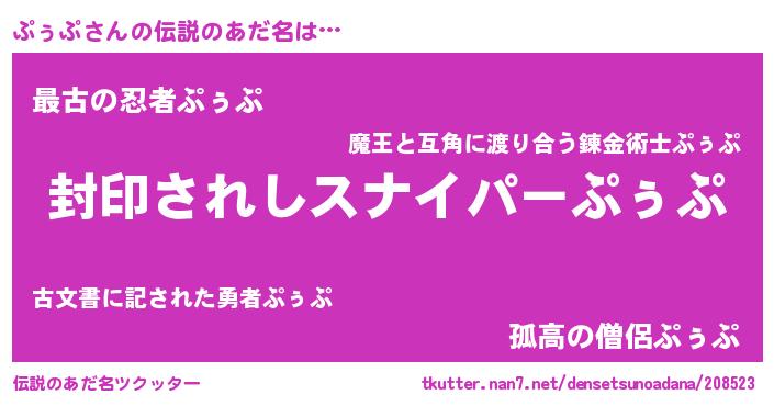 | 胡散臭い通販商品みたいなあだ名 | 『億万長者になれる霊験あらたかなお札…その名も「ぷぅぷ」』 |