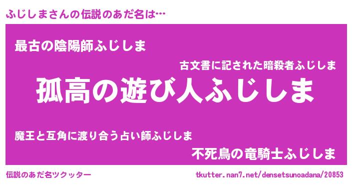 | ヒーロー風カッコイイあだ名 | 『暗黒騎士フジ』『ウルトラふじしまマン』 |