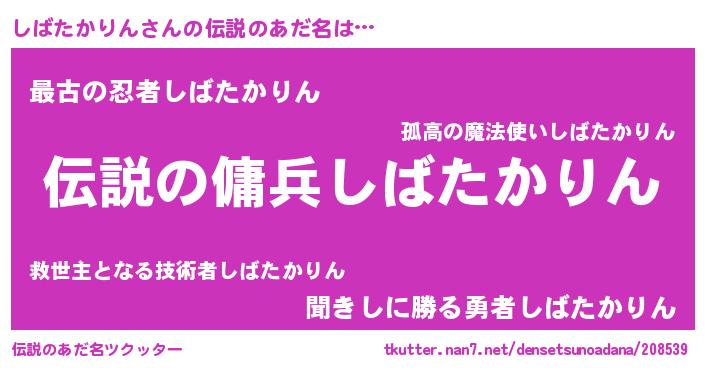 | 男性向けラノベタイトル風あだ名 | 『シバタカリンスレイヤー』 |