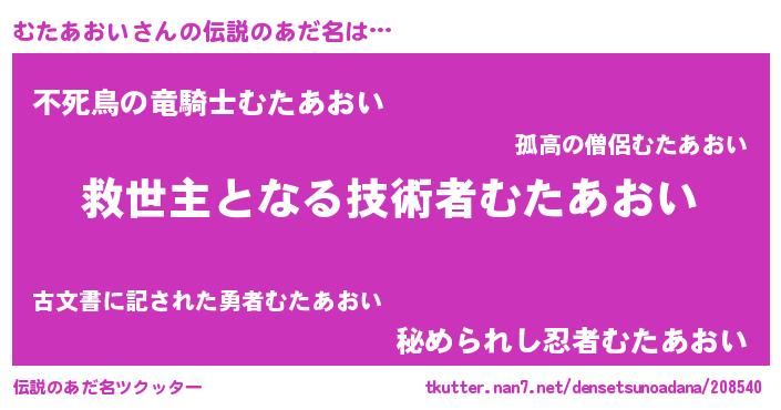 | ヒーロー風カッコイイあだ名 | 『天空の使者むたあおい』『仮面ムタダー』 |