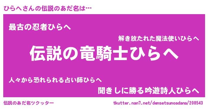 | ヒーロー風カッコイイあだ名 | 『スーパーヒラヘ』『ウルトラひらへマン』 |