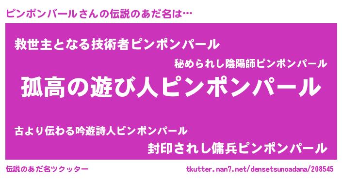 | 男性向けラノベタイトル風あだ名 | 『ピンポンパールスレイヤー』 |