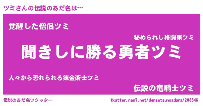 | ヒーロー風カッコイイあだ名 | 『超時空戦士ツミ』『仮面ツミダー』 |
