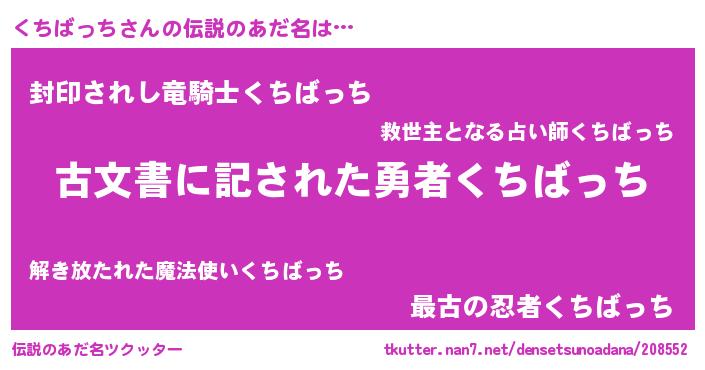 | ヘコむあだ名 | 『くちばっち(震え声)』『くちにー』 |
