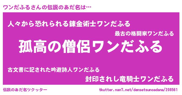 | 意味不明あだ名 | 『住所不定無職ワンだふる(43歳)』 |