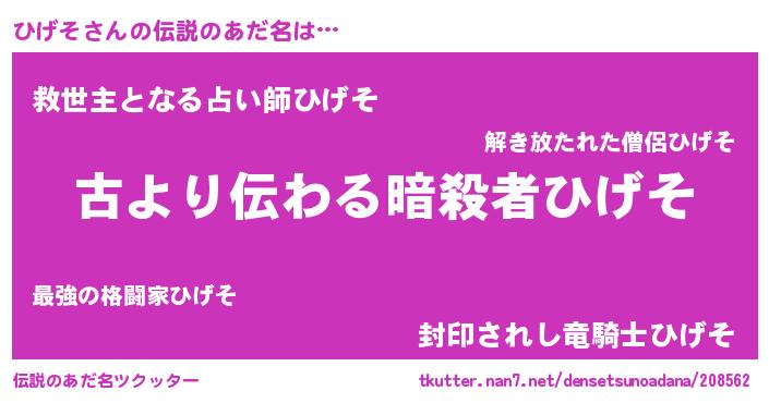| ヒーロー風カッコイイあだ名 | 『仮面ヒゲダー』『ネオヒゲソ』 |
