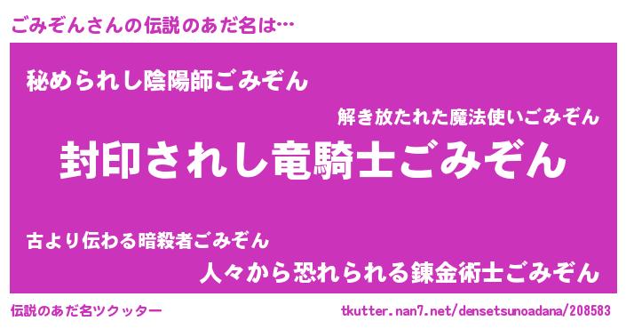 | 意味不明あだ名 | 『住所不定無職ごみぞん(3歳)』 |