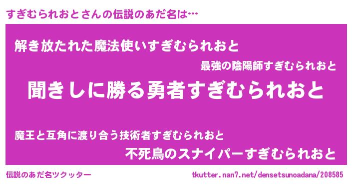 | 男性向けラノベタイトル風あだ名 | 『はたらくすぎむられおとさま!』 |