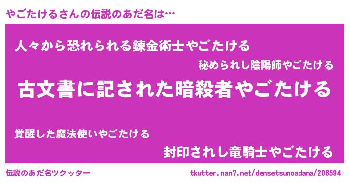 | 意味不明あだ名 | 『永久保存やごたける』 |