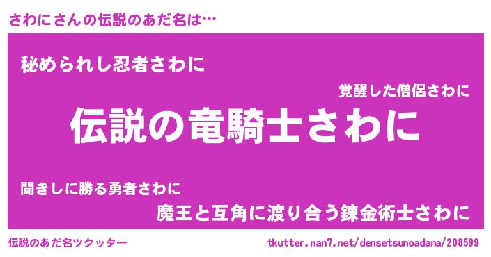 | 意味不明あだ名 | 『住所不定無職さわに(7歳)』『自称さわに』 |