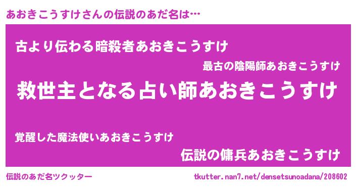 | 女子向けラノベタイトル風あだ名 | 『死神あおきこうすけの再婚』 |